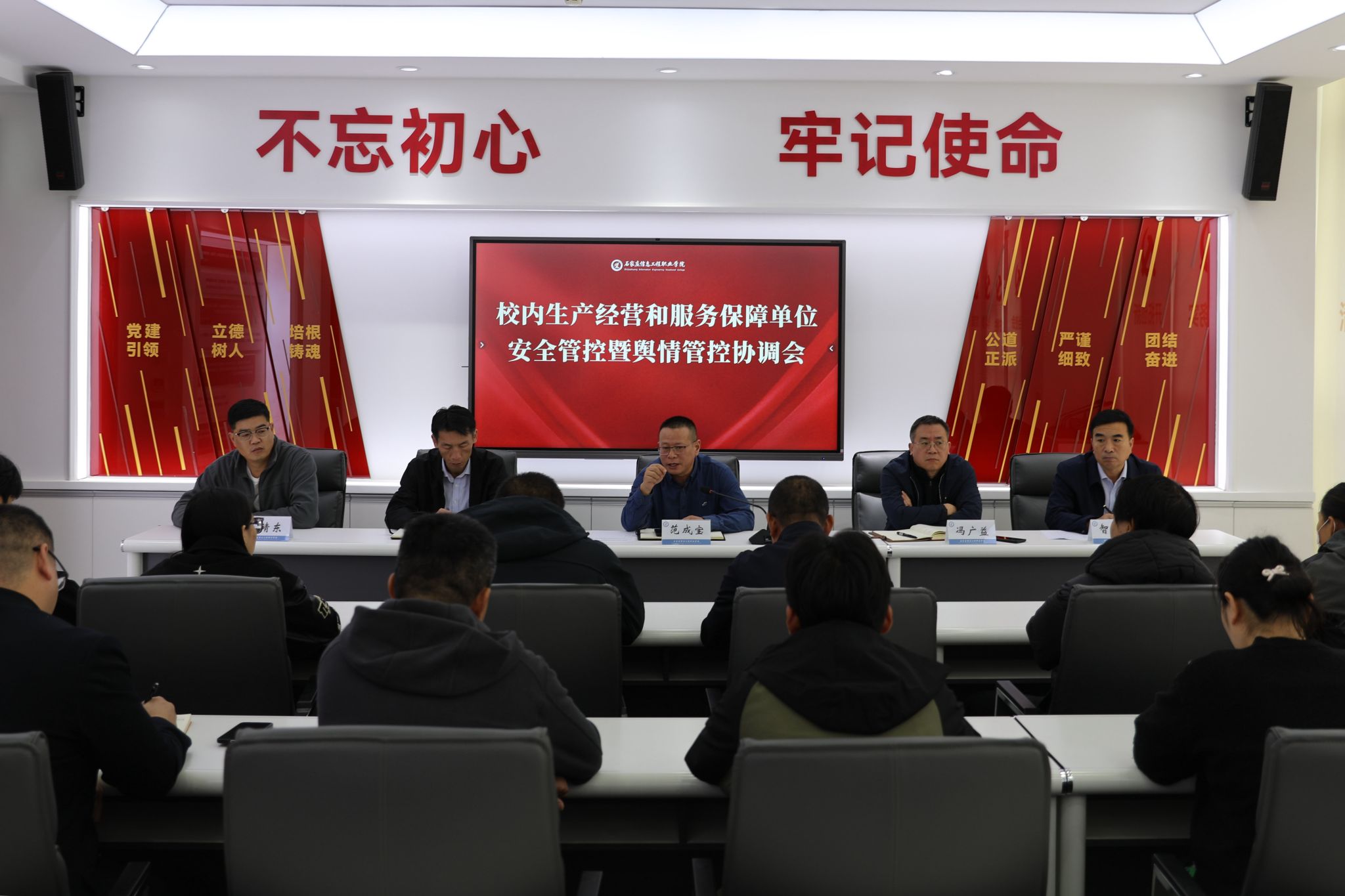 为规范校内生产经营和服务保障单位相关工作人员行为,提升安全管控和舆情处置能力,10月11日上午,学院党委委员、组宣部部长范成宝主持召开校内生产经营和服务保障单位安全管控暨舆情管控协调会。办公室、学生处、后勤管理处、安全工作处相关负责人及校内各生产经营和服务保障单位负责人参加。